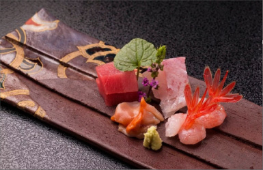 蟹、鰤刺しと新潟の地魚盛り合わせ。 日本酒の正統派「おつまみ」、お造りにはやはり高田酒造伝統の「漱石」を。